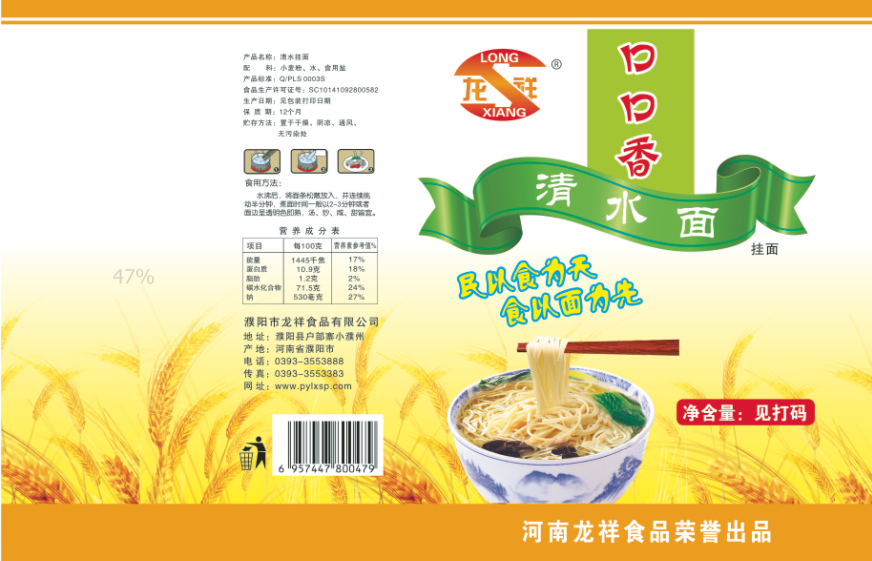 濮陽(yáng)市龍祥食品有限公司位于河南省濮陽(yáng)縣戶(hù)部寨鎮(zhèn)小濮州,始建于1994年,前期投資200萬(wàn)元,經(jīng)過(guò)幾年的努力,大力開(kāi)發(fā)市場(chǎng),由于市場(chǎng)的需求量急劇上升,出現(xiàn)供不應(yīng)求,于2004年擴(kuò)建,建成一座新型的現(xiàn)代化面粉加工企業(yè),并擁有全國(guó)先進(jìn)全自動(dòng)生產(chǎn)設(shè)備一套,產(chǎn)量由以前的100噸/天,提高到現(xiàn)在400噸/天。 2012年再次擴(kuò)大規(guī)模申請(qǐng)為濮陽(yáng)市龍祥食品有限公司,注冊(cè)資金500萬(wàn)元。2012年又投資800萬(wàn)元新建掛面生產(chǎn)線(xiàn)一條,日產(chǎn)掛面50噸。龍祥食品有限公司現(xiàn)有職工120余人,總工程師1人,專(zhuān)業(yè)技術(shù)人員10人,經(jīng)濟(jì)師1人,會(huì)計(jì)師1人,銷(xiāo)售人員2人,優(yōu)秀專(zhuān)業(yè)人員20余人。  龍祥公司自創(chuàng)建以來(lái),社會(huì)效益十分可觀(guān)。公司一直以“今天的質(zhì)量,明天的市場(chǎng)”為信念,“一切為了客戶(hù)需求,竭誠(chéng)追求完美品質(zhì)”為企業(yè)宗旨,走專(zhuān)業(yè)化經(jīng)營(yíng)和職業(yè)化管理的路子。